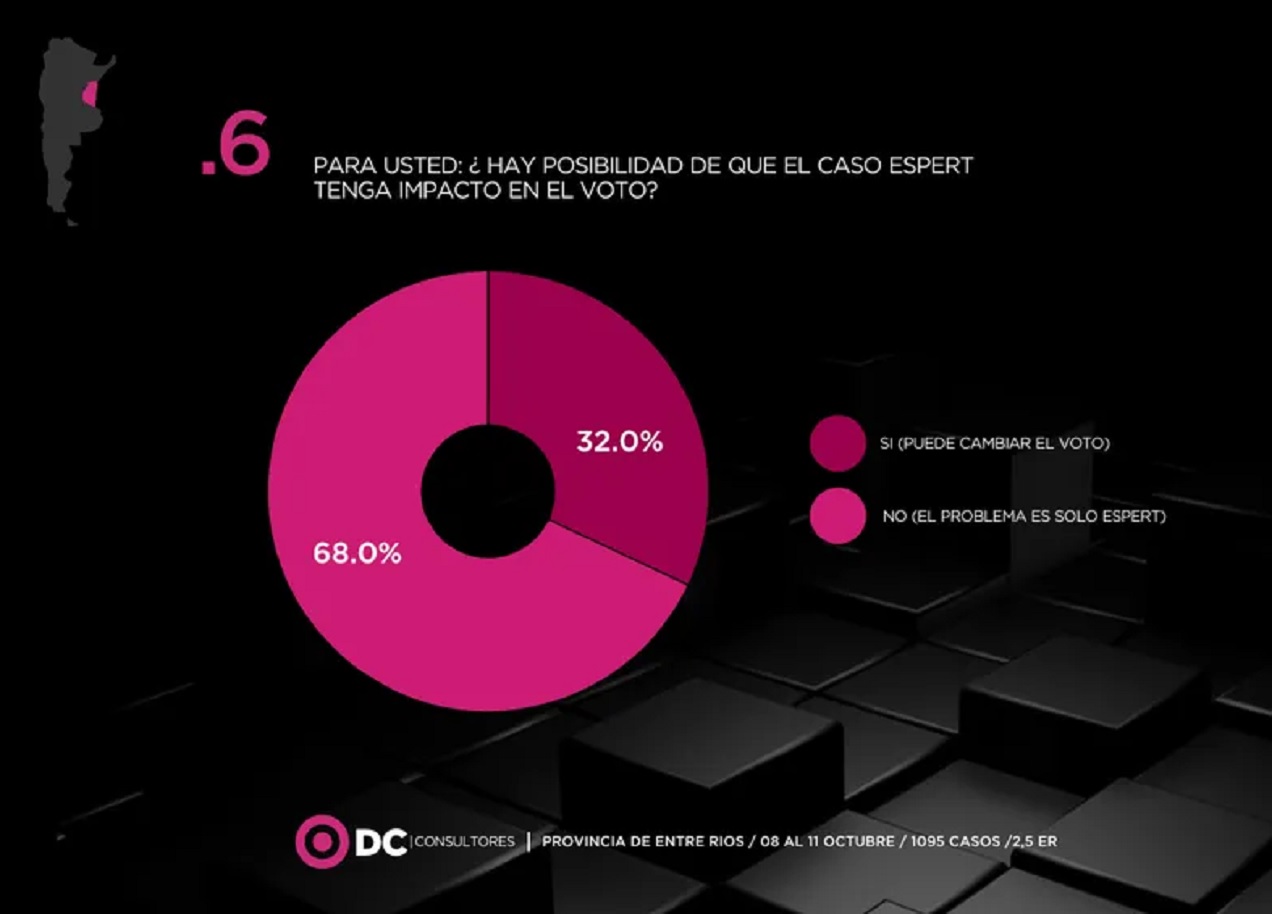 En Entre Ríos, el escándalo narco que involucra a Espert parecería no tener consecuencias, al menos no directas, en las urnas. El 68% de las personas consultadas aseguró que no tendrá impacto.