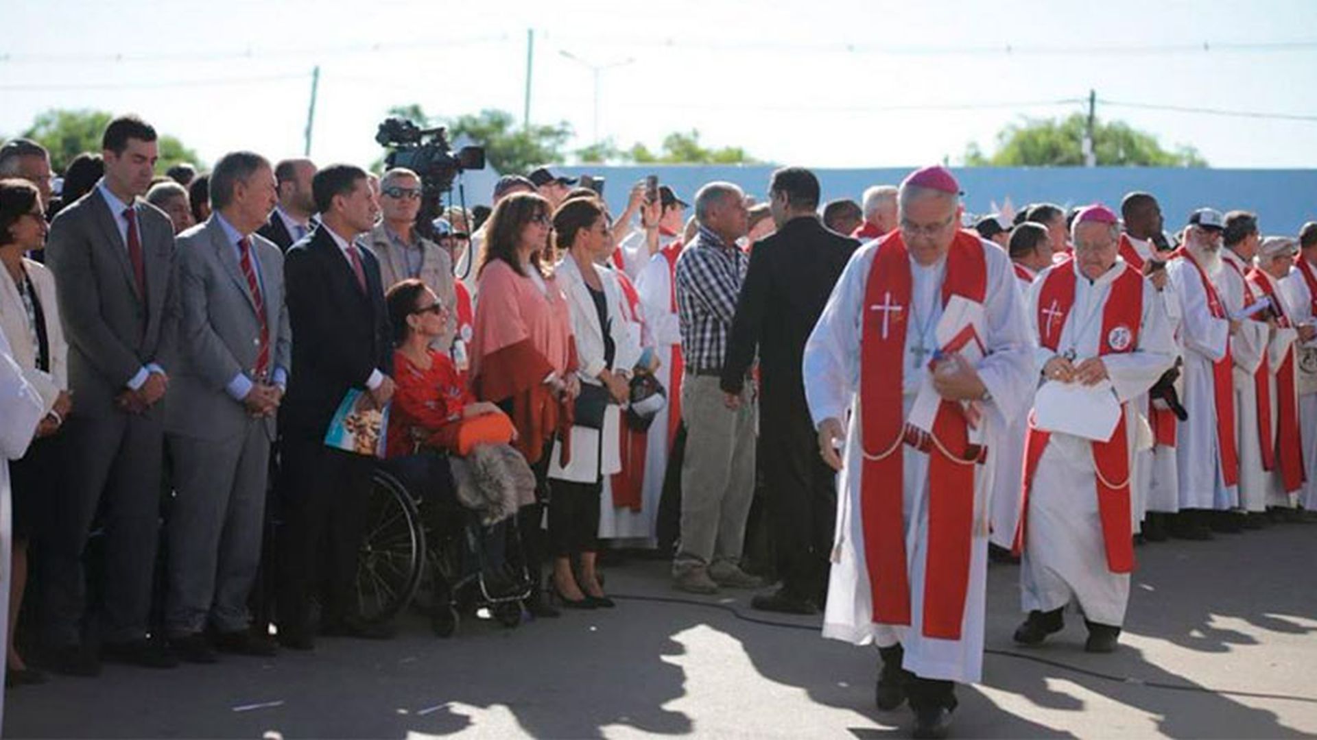 La vicepresidenta Gabriela Michetti participó de la ceremonia de beatificación de monseñor Enrique Angelelli en la provincia de La Rioja y un grupo de curas desplegó un cartel de protesta contra el Gobierno dirigido a ella. Durante la ceremonia, que se llevó a cabo en el Parque de la Ciudad, a 7 kilómetros de la capital provincial, Michetti elogió al obispo de La Rioja asesinado en la última dictadura militar y señaló: «Los argentinos católicos estamos emocionados por su beatificación». «Angelelli fue un pastor con olor a oveja , como dice el Papa Francisco: estuvo al lado de los más necesitados. Él y sus colaboradores fueron mártires y los argentinos católicos estamos emocionados por su beatificación», afirmó la Vicepresidenta.
