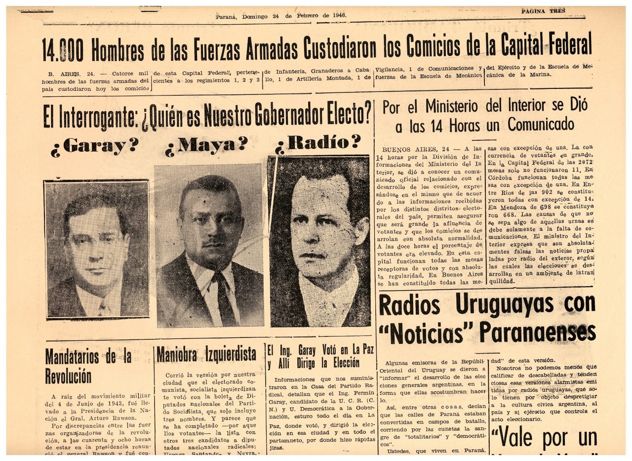 En 1946 una nueva era se iniciaba en el país y la provincia. La irrupción del peronismo como movimiento político había barrido como una potente ola el sistema de partidos políticos existentes en Argentina. Nuevos actores sociales se incorporaban a la política y se reflejaron en las urnas. En Entre Ríos, tras tres décadas de hegemonía del radicalismo en el poder, triunfaba la fórmula del partido Laborista y sus aliados.