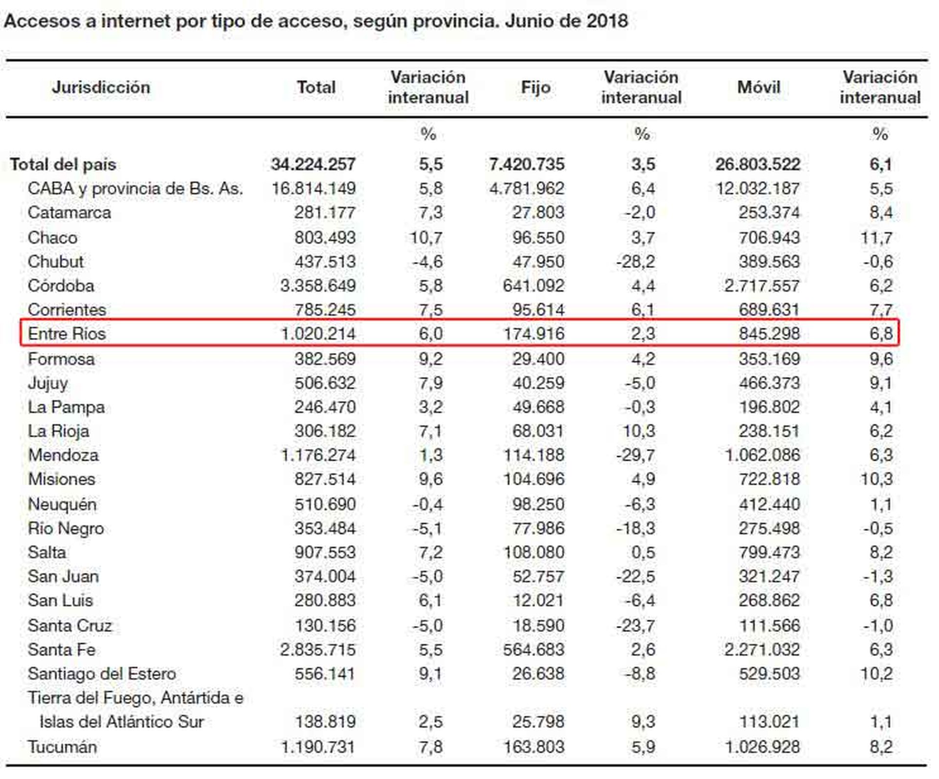 El crecimiento interanual en Entre Ríos fue del 6,8%, un poco por encima del promedio nacional de incremento de las conexiones, que fue del 5,5%.