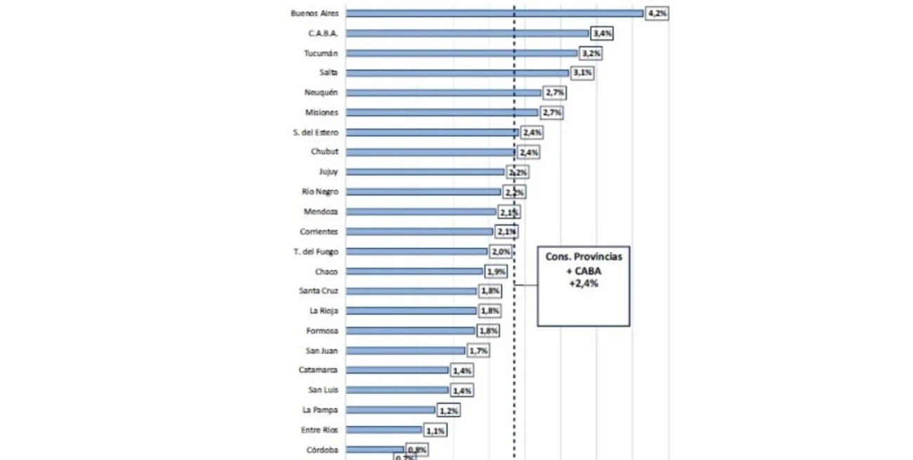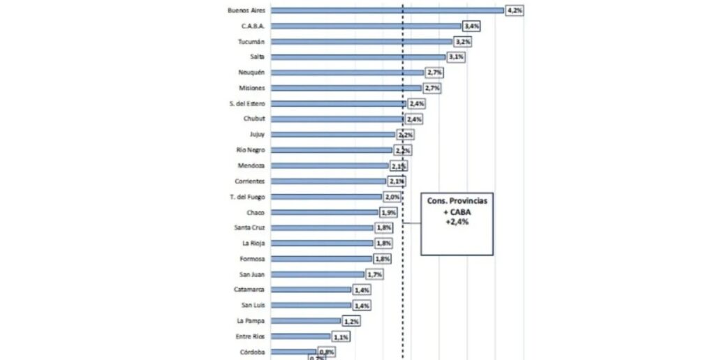 Mientras Buenos Aires y varias jurisdicciones del norte registraron incrementos significativos, los distritos del centro como Entre Ríos quedaron rezagados. El informe señala que la diferencia en el reparto llegó a los 3,5 puntos porcentuales entre Buenos Aires, con una suba del 4,2%, y Santa Fe, con apenas un 0,7%.
