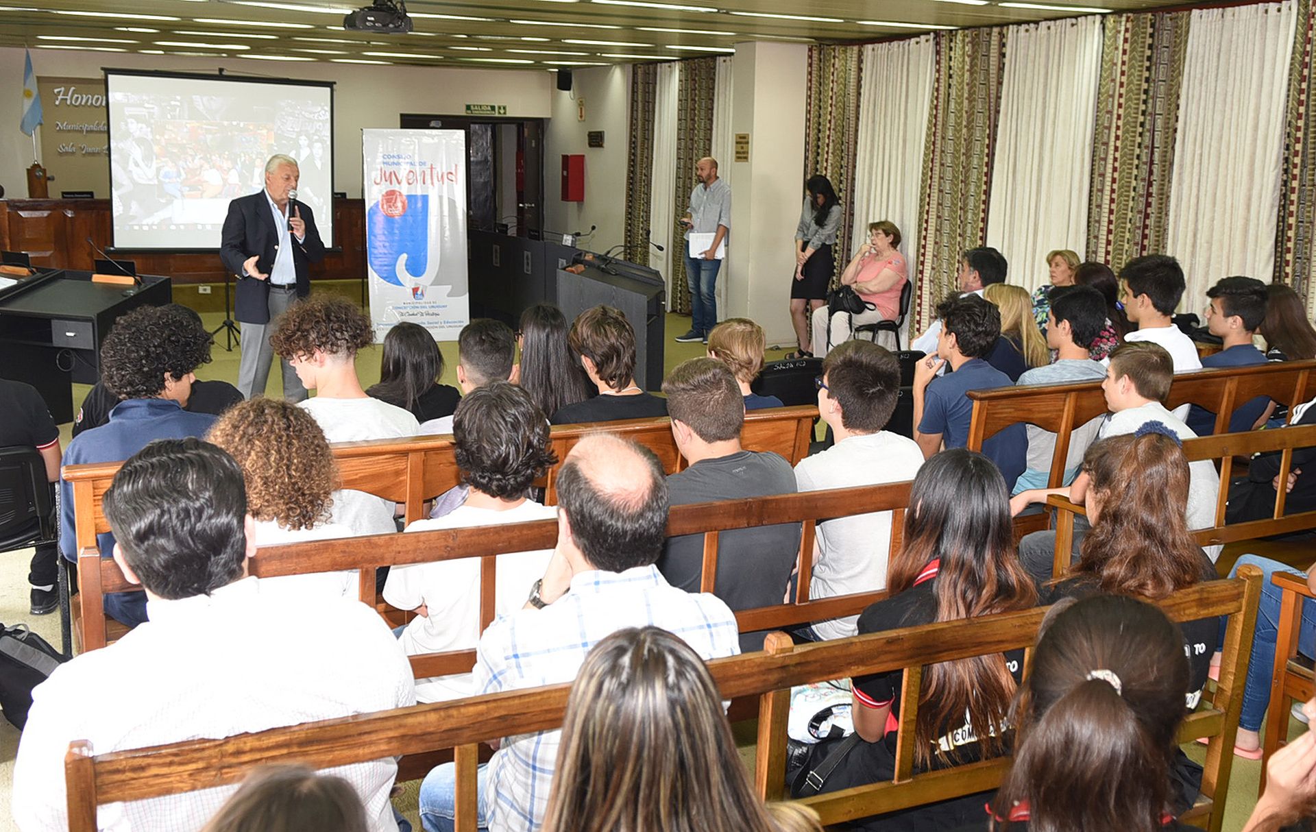 De los 72 cursos de colegios secundarios que participaron de la Estudiantina 2019, los ganadores recibieron este martes sus premios, durante una ceremonia realizada en el salón del Concejo Deliberante. Participaron el intendente y el viceintendente, José Lauritto y Martín Oliva, junto a los Coordinadores del Consejo Municipal de la Juventud, concejales, padres, estudiantes y demás integrantes de las comunidades educativas de los colegios ganadores.
