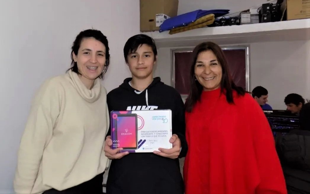 Las tablets fueron entregadas por la secretaria de Desarrollo Social Marianela Marclay, acompañada por la concejala Graciela Guerrero, quien preside la Comisión de Educación del Concejo Deliberante.