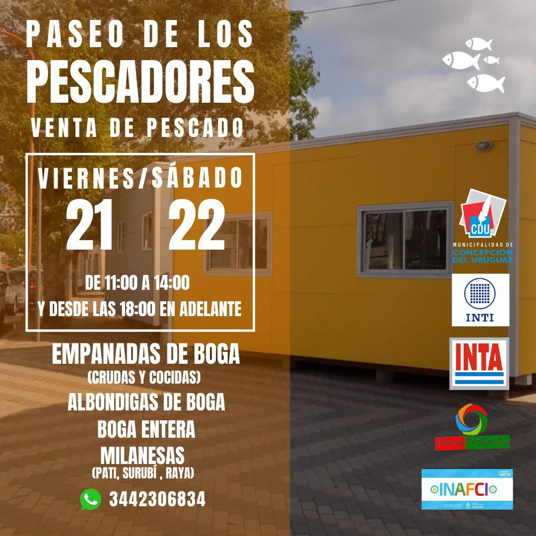 Este viernes 21 y sábado 22 desde las 11 horas hasta las 14 estará abierto el paseo de los pescadores. Luego de la inauguración del sábado 6 de abril continúa sus actividades, con la venta de los distintos productos gastronómicos que ofrecen como: albóndigas, empanadas, milanesas de patí, surubí, y boga entre otros.