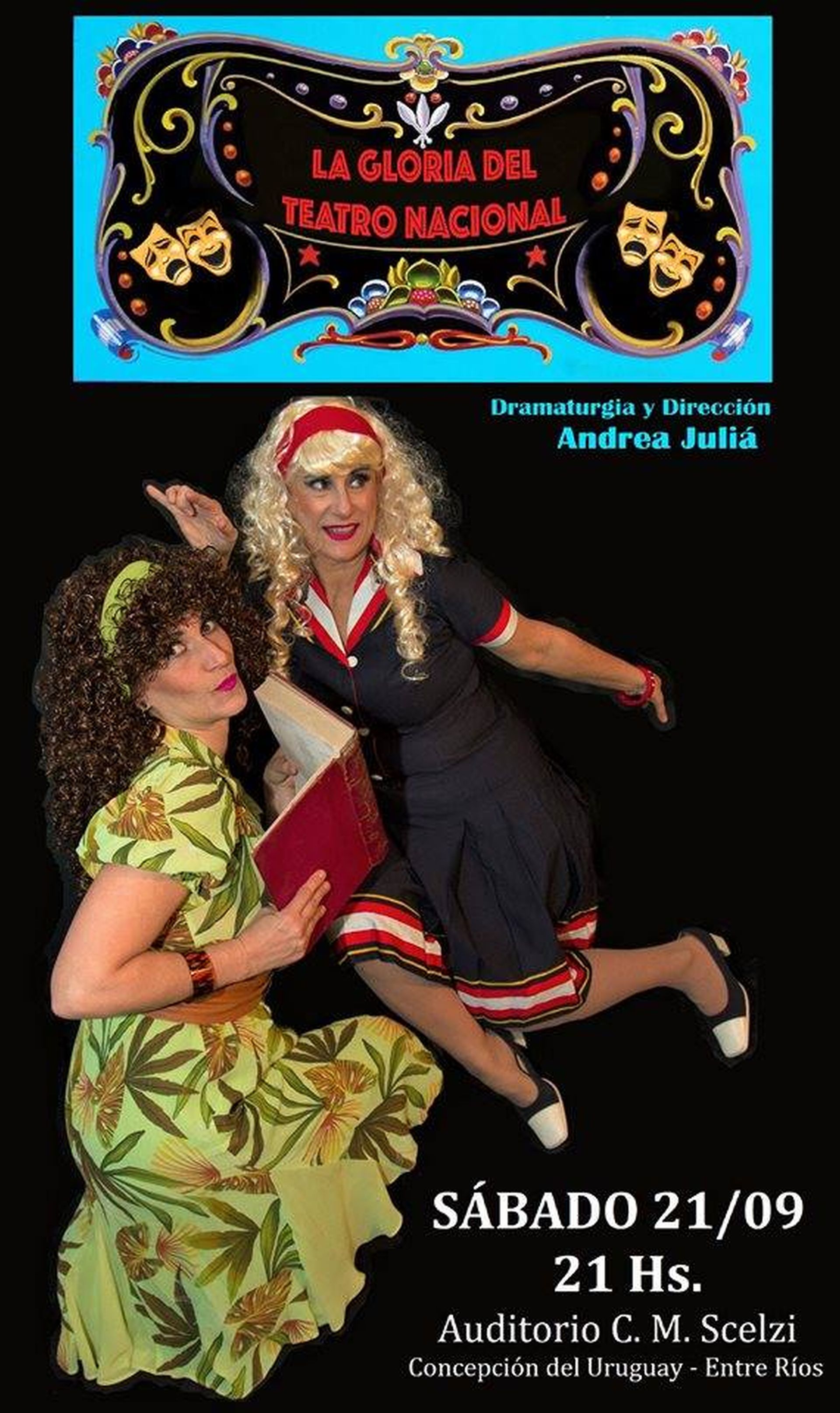 El sábado se pondrá en escena la obra “La Gloria del Teatro Nacional” escrita y dirigida por Andrea Juliá, con las actuaciones de Patricia Miotto y Valeria Blanco, y la producción del grupo desdeMaCero teatro independiente. La función comenzará a las 21 horas en el auditorio Carlos M. Scelzi.