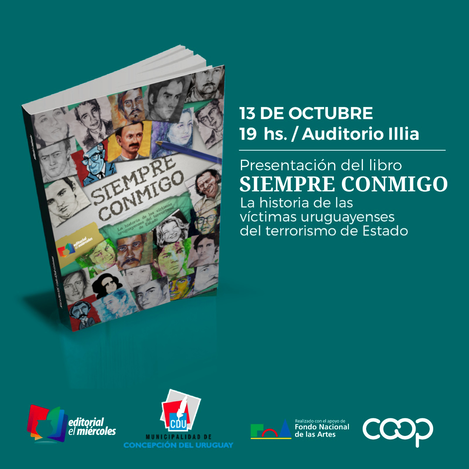 “Siempre conmigo. La historia de las víctimas uruguayenses del terrorismo de Estado”, así se titula el volumen que acaba de editar la cooperativa El Miércoles Comunicación y Cultura de nuestra ciudad, que reúne las historias de vida de las 26 víctimas uruguayenses del terrorismo de Estado (18 contabilizadas en la cabecera y 8 en el resto del departamento).
