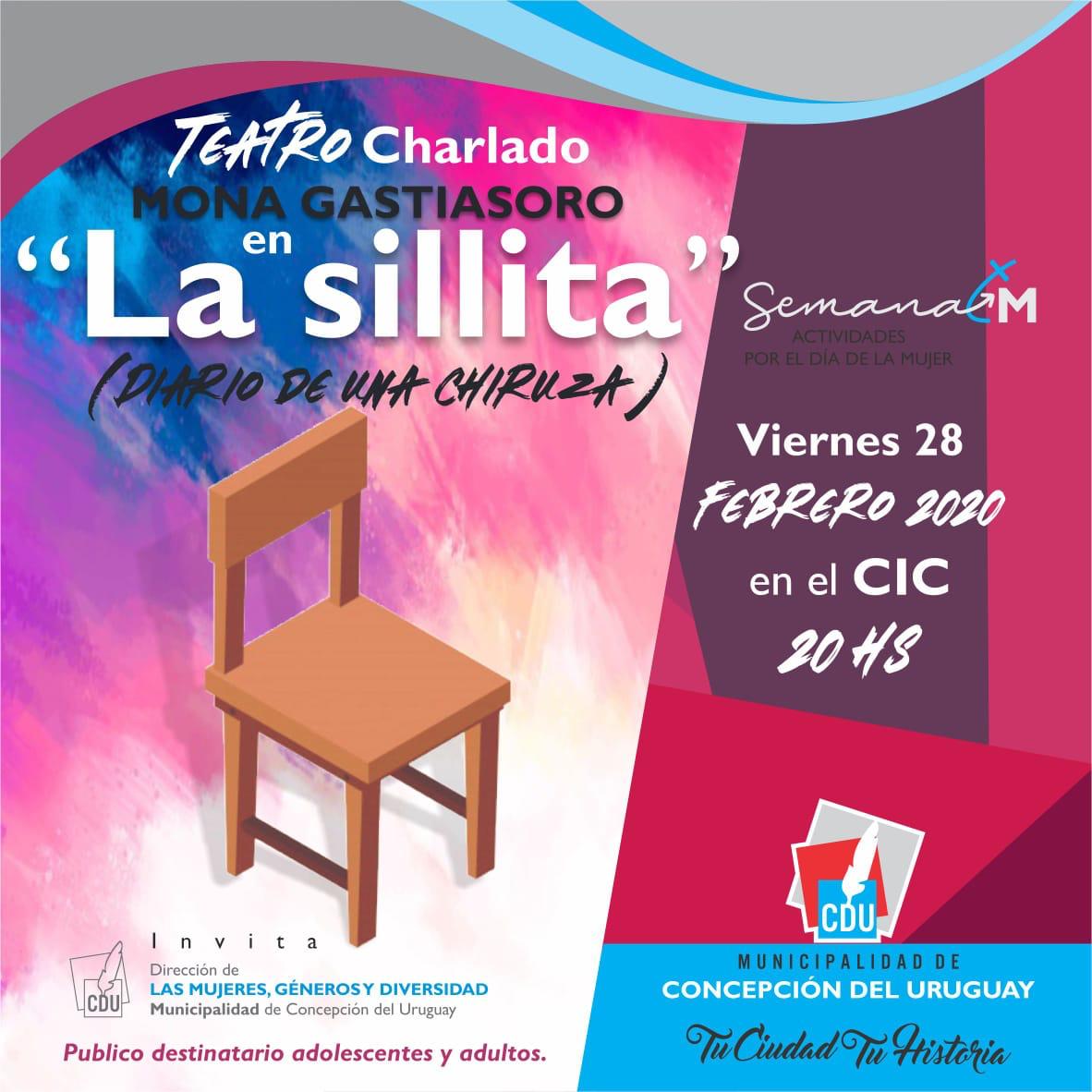 Desde la Dirección de las Mujeres, Géneros y Diversidad se pondrá en escena el monólogo teatral “La Sillita” (diario de una chiruza), protagonizado por Mona Gastiasoro. Este monólogo alerta sobre cómo el maltrato, el bullying y la inequidad social hacen que la sociedad marque a una persona.
