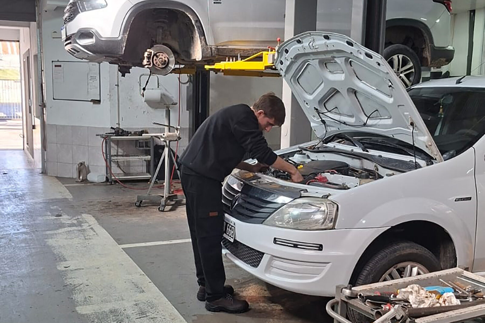 Santiago Gómez, alumno de 7° año, comenzó recientemente las prácticas en la empresa Richard Servicio Oficial Fiat, como parte del programa provincial Puente al Trabajo, impulsado por el Instituto Becario.