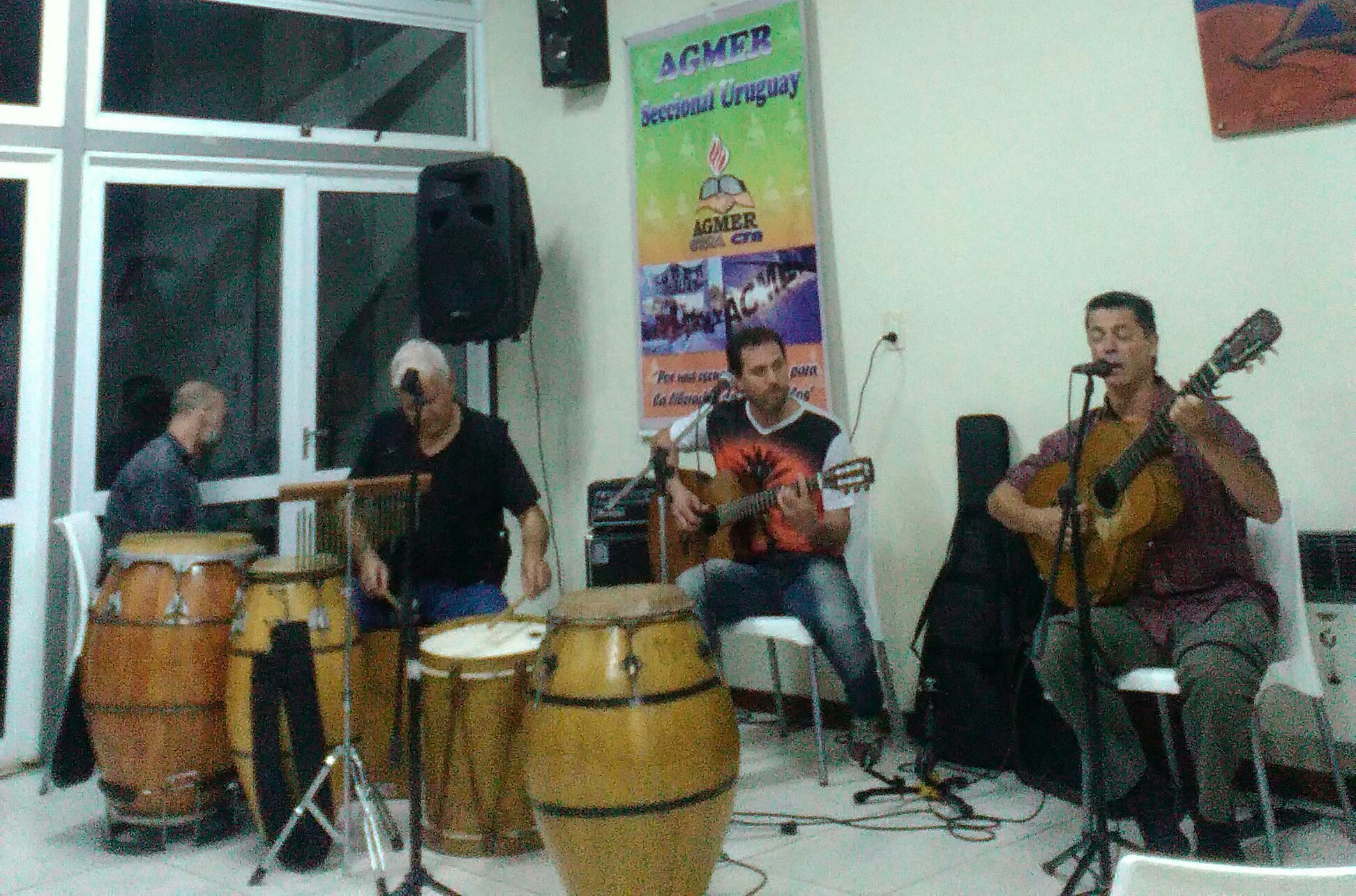 La música, como siempre, estuvo coordinada por el Prof. Lisandro González, comenzó con la actuación de Spadnout Ciruela, banda conformada por el mencionado en guitarra, bajo y voz Ceci Baldunciel, flauta Carlos Arrizabalaga y Silvana León, quienes deleitaron con melodías tranquilas. Luego el clima de carnaval fue en crescendo cuando actuaron Víctor Nichele y su grupo con un repertorio de carnaval norteño y de carnaval uruguayo, finalmente hubo en un cierre fantástico con Algún Ente, para cerrar se fusionaron estas dos bandas creando un efecto de paroxismo de tamboriles que hizo su llamada al estilo montevideano entre los presentes, que no se privaron de bailar y hacer un ritual carnavalesco para perderse tras la comparsa de músicos, desfilando por el viejo zaguán de la casona de Almafuerte 729 . Luego ya avanzada la noche, para que el festejo fuese completo, se compartió empanadas y pizzas y se hizo un brindis por el cierre de este 2017 y augurando un feliz 2018, poniendo en el saludo el deseo de que el carnaval con su impronta vital y su alegría esté presente en cada uno de nosotros porque como dice la canción popular: “No hay que llorar. Que la vida es un carnaval y las penas se van cantando”, bailando, leyendo y compartiendo con amigos grandes momentos…