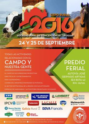 Los días 24 y 25 de setiembre, en el predio ferial de la Autovía José Gervasio Artigas (Km 131/132) se llevará a cabo una nueva edición de la Expo Rural.