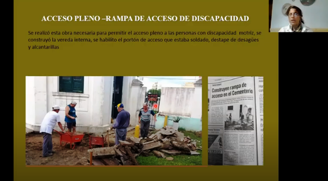 Su exposición se basó en su carácter de administradora del servicio público que se brinda en el Cementerio, considerado Patrimonio Cultural y Natural de la ciudad. Se trata del tercer cementerio, fundado en 1856 y que cuenta con 8 hectáreas, comprendiendo también al Cementerio Israelita, que también está incluido en el carácter patrimonial.