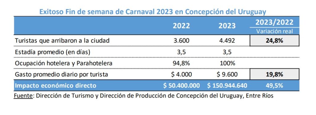 Fuente: Dirección de Turismo y Dirección de Producción de Concepción del Uruguay, Entre Ríos