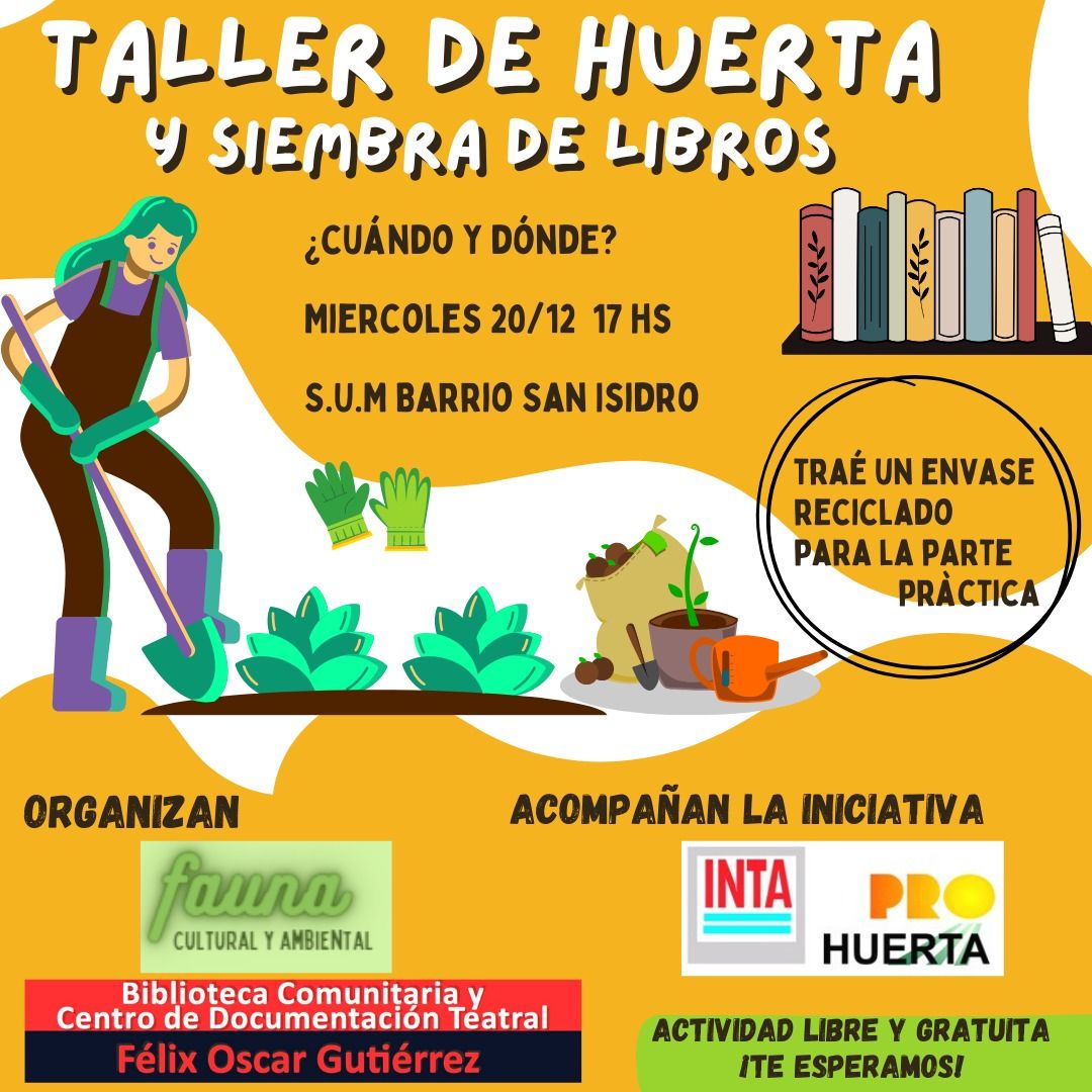 El taller será dictado por la capacitadora Martina Boxler del Programa Pro-Huerta del INTA y será moderado por la Lic. Lucía González y Lic. Sofia Hernández del Espacio Cultural y Ambiental FAUNA.