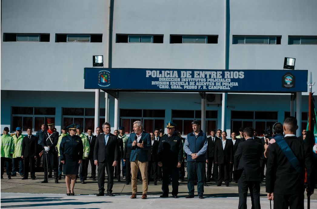 «Necesitamos que nuestra Policía, que la Policía de Entre Ríos, que tanto orgullo nos genera, esté en la calle cuidando a los vecinos; que recuperemos un patrimonio de los entrerrianos, que es la paz. Saber que podemos dormir tranquilos y que nuestras cuestiones más preciadas como la vida de nuestros seres queridos, también nuestros patrimonios están bien cuidados por esta fuerza», dijo el gobernador para finalizar su discurso.