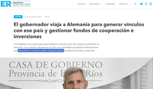 El mandatario fue invitado por la fundación Konrad Adenauer para llevar adelante durante cuatro días distintas actividades en Alemania, con el objetivo de generar vínculos con autoridades del gobierno federal de ese país, de gobiernos locales y empresas. Desde Comunicación del Gobierno creyeron oportuno destacar, además, que  la madre del gobernador es oriunda de Alemania.