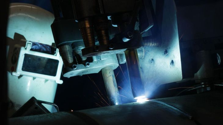 La soldadura automática funciona en dos planos: en el interno con un proceso simultáneo de 8 puntos de soldadura en toda la circunferencia, y en el externo con dos unidades, con dos puntos de soldadura cada una, que orbitan el lado externo del tubo para completar el proceso. Luego las soldaduras se verifican a través de un sistema de ultrasonido, lo que garantiza su calidad.