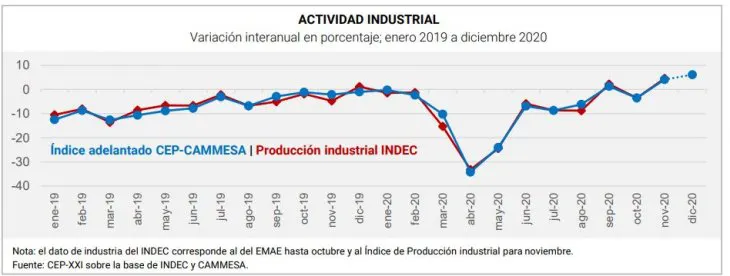 Un informe del Centro de Estudios para la Producción (CEP XXI), dependiente del Ministerio de Desarrollo Productivo, reflejó que la industria creció 6,1% anual en diciembre de 2020, en base a datos de consumo de energía registrados por CAMMESA.