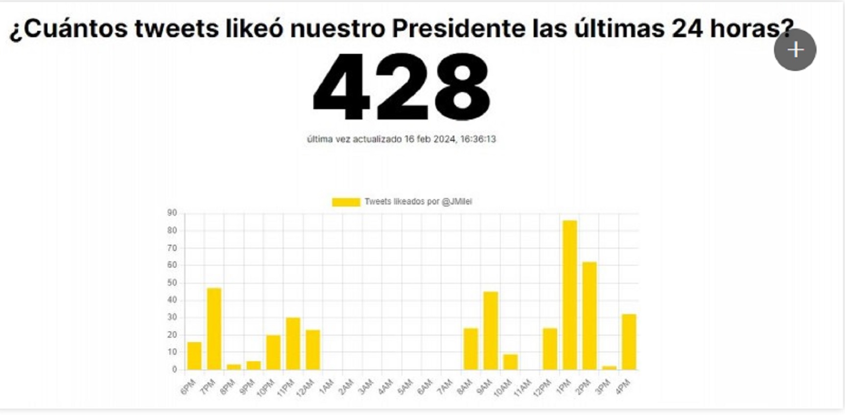 El presidente le pone like a cientos de tuits por día y que en su mayoría elige publicaciones de los propios trolls libertarios que inundan el timeline de contenido con el que acomodan la realidad a semejanza de Milei.