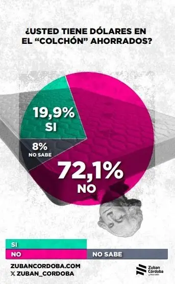 Antes de anunciar la medida, el Gobierno hizo hincapié en que gran parte de los argentinos tenía dólares «abajo del colchón»; es decir, ahorrados pero sin declarar. Sin embargo, esta encuesta reveló que el 72,1% de los argentinos no tiene dólares ahorrados en negro; el 19,9% confirmó que tiene y el 8% dijo no saber.
