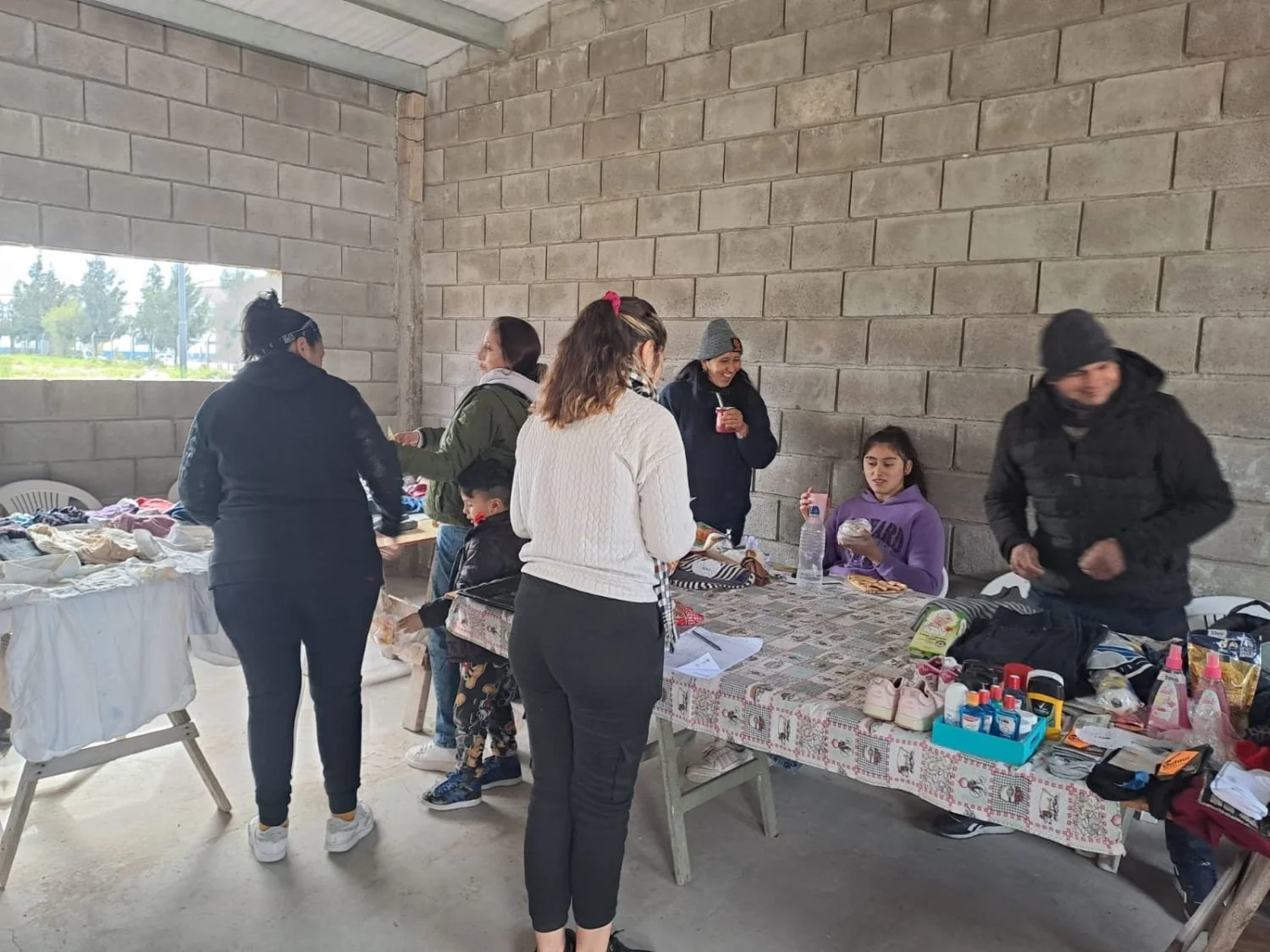 Entre el bullicio se escucha a una niña de unos 10 años que, en el medio día frío, grita “vendo ropa, vendo ropa”, se ríe y señala pequeñas prendas usadas que están en una pila junto a su madre. En otro extremo del salón una mujer mayor vende bizcochuelo y torta frita, otros tienen en su mesa artículos de almacén, de bazar y calientan el cuerpo con mate. Todos forman parte de un trueque, la modalidad comercial que volvió para hacer frente a la crisis económica desatada por el gobierno del presidente Javier MIlei. Algunos cuentan que tuvieron que recurrir a él más de 20 años después de los primeras experiencias que marcaron uno de los peores momentos del país. Melani Borré se inspiró en ellos para formar y coordinar uno en su barrio de Lomas de Zamora, bajo la misma lógica pero de a grupos más pequeños. En medio de la incertidumbre, muchos ahora intercambian también mercadería por comida, desde latas de arvejas hasta platos elaborados.
