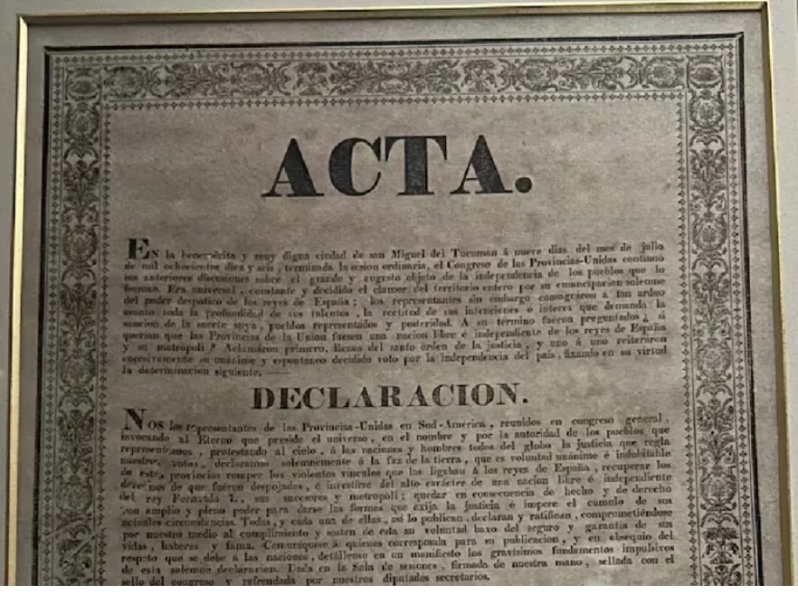Y ya en el Acta los representantes reunidos manifiestan: “que es voluntad unánime e indudable de estas provincias romper los violentos vínculos que las ligaban a los reyes de España, recuperar los derechos de que fueron despojadas, e investirse del alto carácter de una nación libre e independiente del rey Fernando VII, sus sucesores y metrópoli.