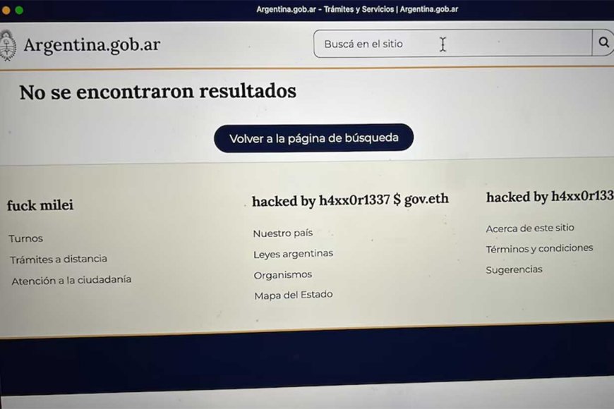 En la página principal del portal Mi Argentina, no solo se observó por un momento un video del rapero Homer el Mero Mero, sino que los ciberdelincuentes identificados como “h4xx0r1337 $gov.eth” dejaron mensajes en torno burlesco indicando “really? hacked again!?” (¿de verdad? ¿hackeado de nuevo?). Además, en el pie de página del portal incluyeron un mensaje en contra del mandatario al publicar “fuck Milei”.