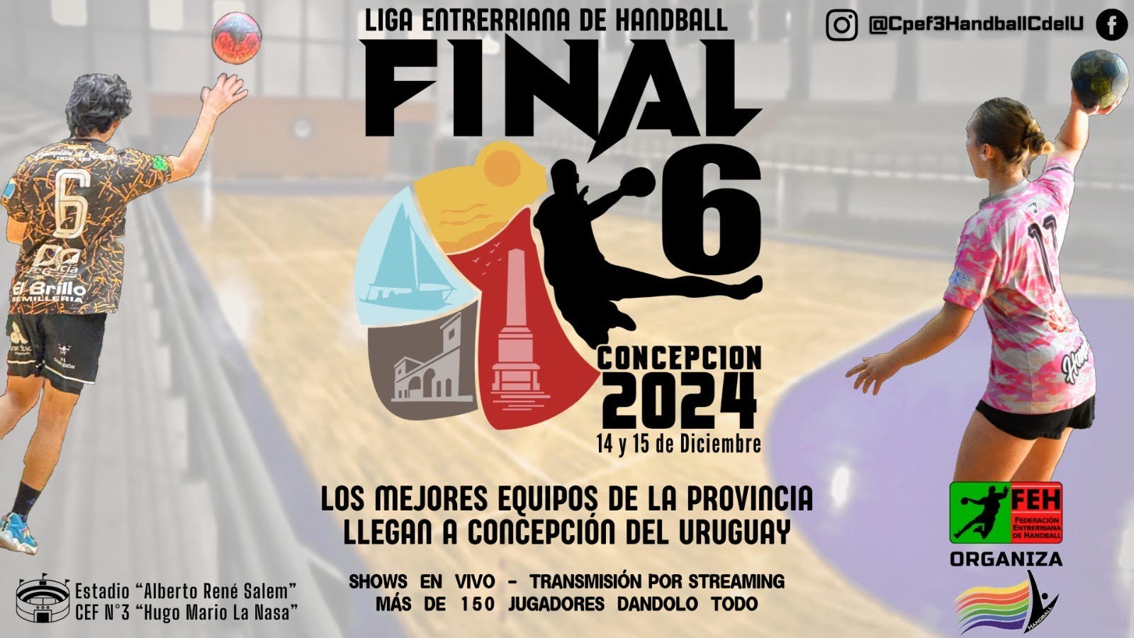 Llega a Concepción del Uruguay el Torneo «Final Six», organizado por la Federación Entrerriana de Handball, dónde reúne a los 6 mejores equipos de la provincia en cada rama, que durante 2 días disputarán los títulos de Campeones Provinciales de Handball de Mayores, buscando las plazas a los Torneos Nacionales de Clubes 2025.