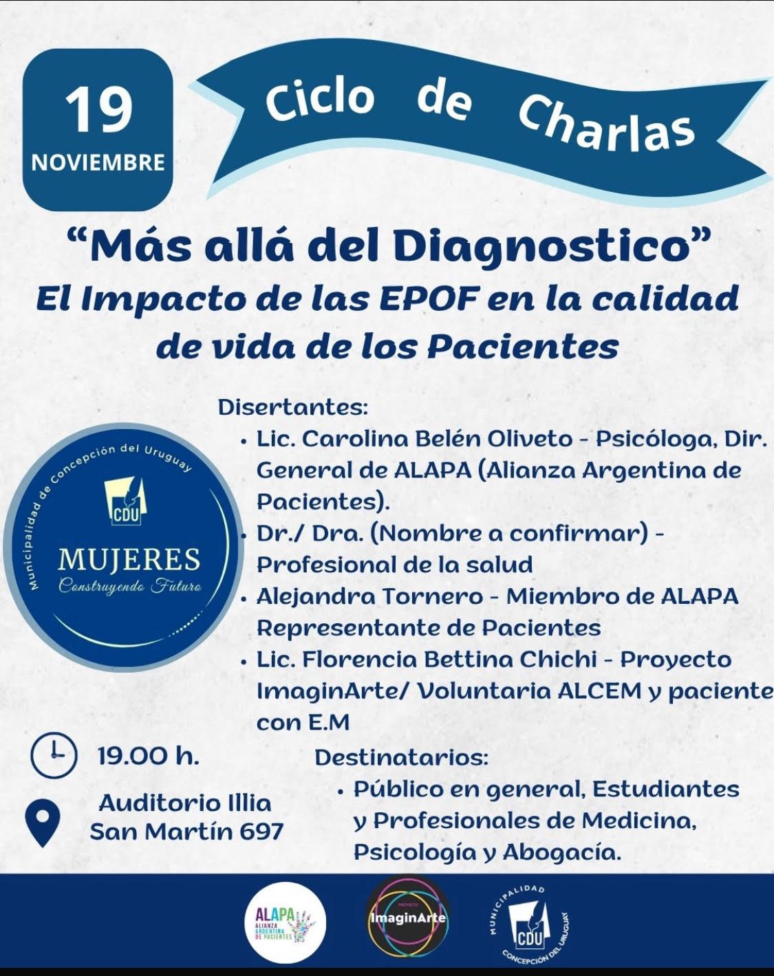 La charla, titulada “Más allá del diagnóstico: el impacto de las EPOF en la calidad de vida de los pacientes”, forma parte del ciclo nacional “Conociendo las Enfermedades Poco Frecuentes por la Argentina”, impulsado por ALAPA (Alianza Argentina de Pacientes). Esta iniciativa busca crear espacios de formación, diálogo y sensibilización en distintas ciudades del país.