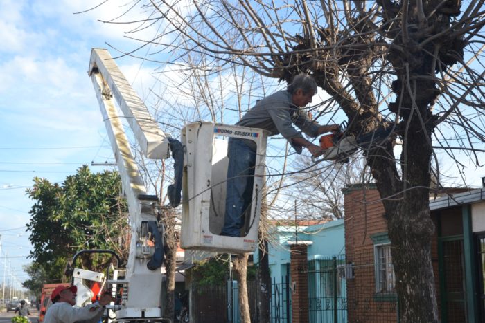 Áreas Verdes trabaja en el actual período de poda, iniciado en mayo. Este trabajo se realiza solamente ante interferencias de los árboles con cables o luminarias. En estos casos, se puede llamar a los números (427626) o 3442523587
