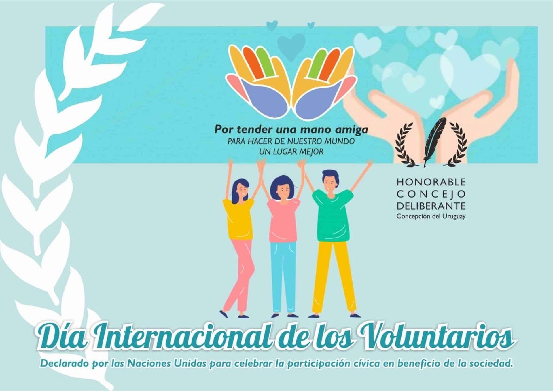 Cada 5 de diciembre se celebra el “Día Internacional del Voluntario”, fecha que fuera declarada por las Naciones Unidas. El Honorable Concejo Deliberante de Concepción del Uruguay adhirió a esta iniciativa a través de la ordenanza Nro. 7342, del año 2005, y desde entonces se lleva a cabo el reconocimiento de aquellas personas que desarrollan actividades Ad Honorem en las instituciones, organismos y agrupaciones que cumplen una función social dentro de nuestra comunidad.