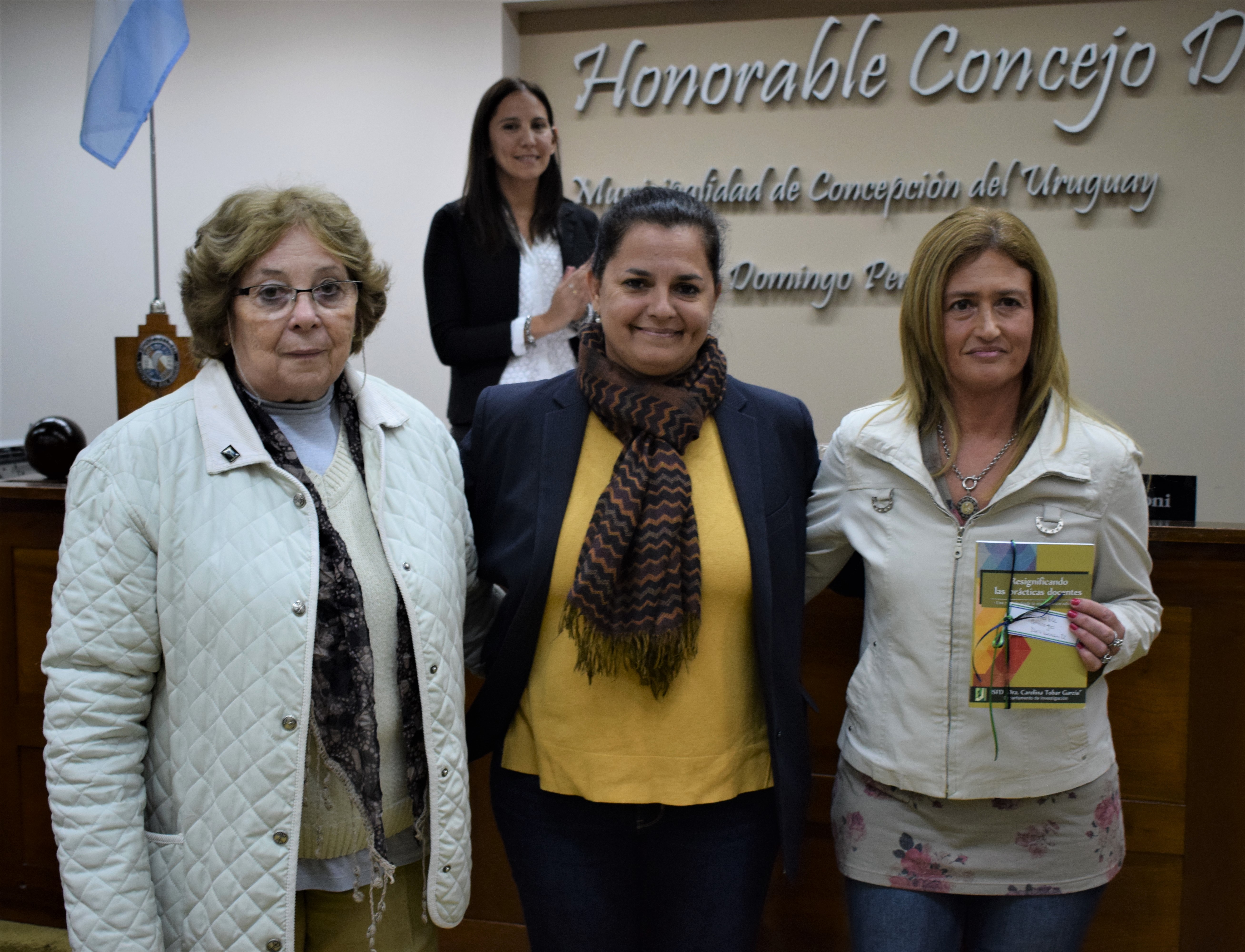 Las concejales Andrea Hassen y María del Carmen Tourfiní hicieron entrega a la Vicepresidenta 1° concejal Viviana Sansoni, a cargo del Concejo Deliberante, de un libro que ambas recibieron en nombre del Cuerpo Legislativo en el Instituto Superior de Formación Docente “Dra. Carolina Tobar García”. Se trata de una mirada desde la investigación educativa que surge del Departamento de Investigación de dicho Instituto, a cargo de las profesoras Margarita Villanova y Virginia González.