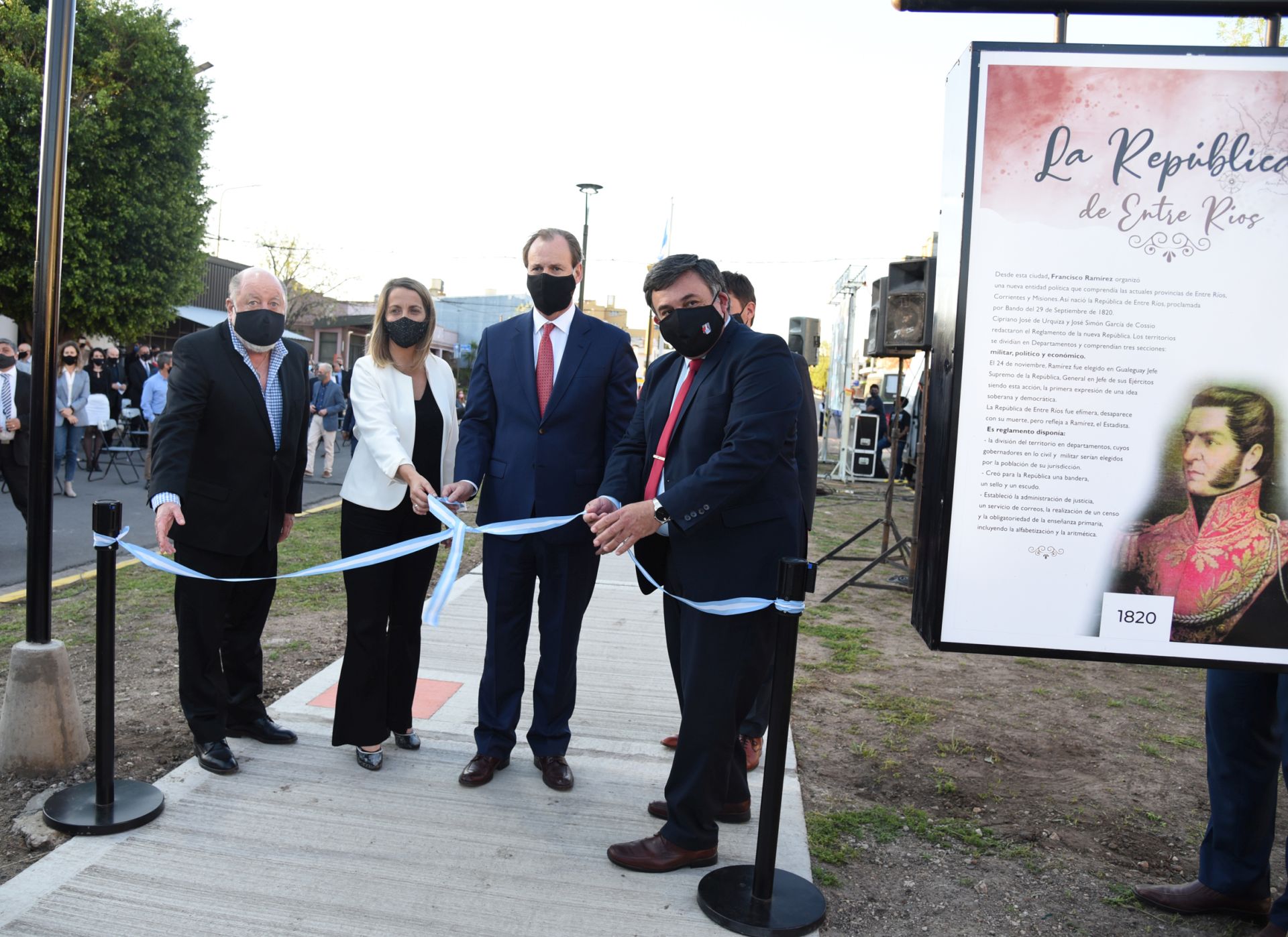 Se cumplió este martes el Bicentenario de la Creación de la República de Entre Ríos, por parte del Gral. Francisco Ramírez. Esta creación fue conmemorada mediante una ceremonia organizada por la Municipalidad, que permitió además inaugurar la primera etapa de la Plazoleta del Federalismo, en el marco de la puesta en valor del bulevar Montoneras. Se trató de una ceremonia presencial y virtual, con un reducido grupo de personas en el lugar, encabezado por el gobernador Gustavo Bordet; la vicegobernadora Laura Stratta; el intendente Martín Oliva; el presidente de la Comisión Permanente para el Estudio de la Vida, Obra y Legado de Francisco Ramírez, Jorge Busti; el viceintendente Ricardo Vales; los legisladores provinciales Horacio Amavet y Jorge Satto; el intendente de San José, Gustavo Bastián; y el presidente de la delegación argentina de CARU, José Lauritto. A ellos se sumaron los intendentes del departamento Uruguay, numerosos y diversos invitados que participaron virtualmente.