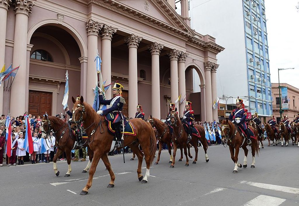 Puntualmente participaron 174 establecimientos educativos, efectivos y unidades móviles de las Fuerzas Armadas y de Seguridad desfilaron en Plaza Ramírez.