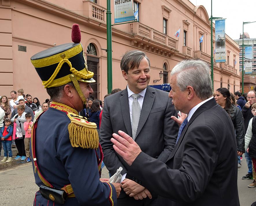 En tanto, La Banda de Música de la Policía de Entre Rios, la Fanfarria Militar del Alto Perú del Regimiento Granaderos a Caballo y la Banda de Música del Batallón de Ingenieros Blindados II del Ejército Argentino mantuvieron los acordes de marchas durante todo el desfile. El discurso oficial se realizó a través de la palabra Luis Angel Cerrudo, director del Palacio San José. Otro de los momentos destacados fue la interpretación del “Himno de la ciudad” a cargo del coro de la ciudad junto a Rubén Cuestas, compositor de dicha canción. El palco oficial se ubicó en la explanada del Centro Cívico, encabezado por el intendente José Lauritto y el vicegobernador Adan Bahl; los ministros de Gobierno, Justicia y Educación, Mauro Urribarri; y de Producción, Carlos Schepens; el presidente del Consejo General de Educación, José Luis Panozzo; intendentes y presidentes de Juntas de Gobierno del departamento; y los legisladores provinciales René Bonato, Marcelo Bisogni y Silvio Valenzuela, entre otro centenar de autoridades de instituciones de la ciudad, de órganos educativos y personajes ilustres de la ciudad que se sumaron a la celebración uruguayense.
