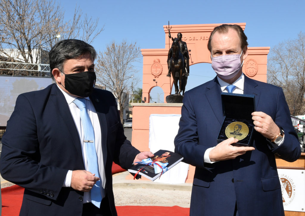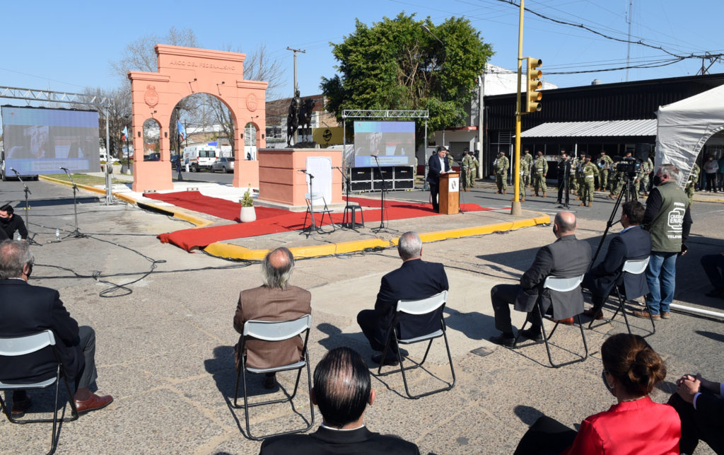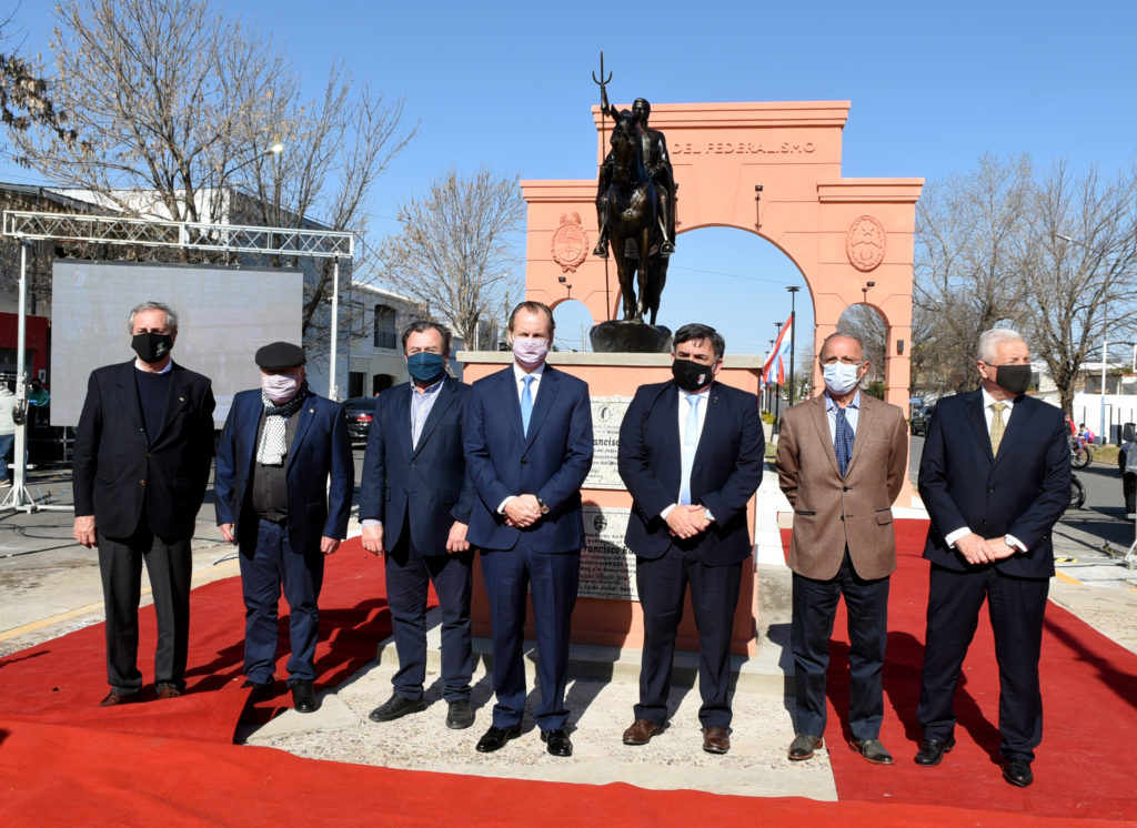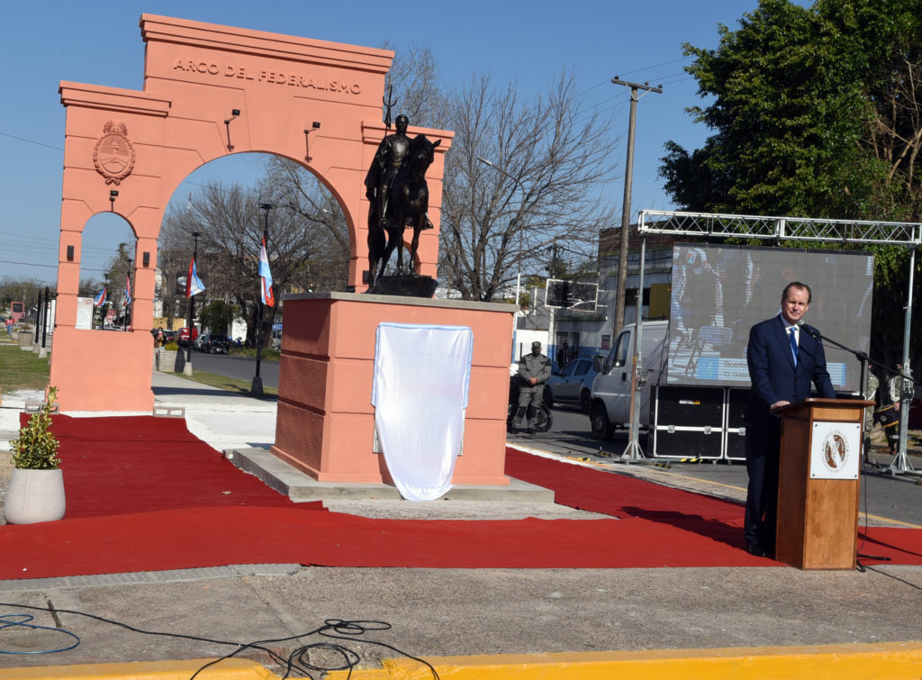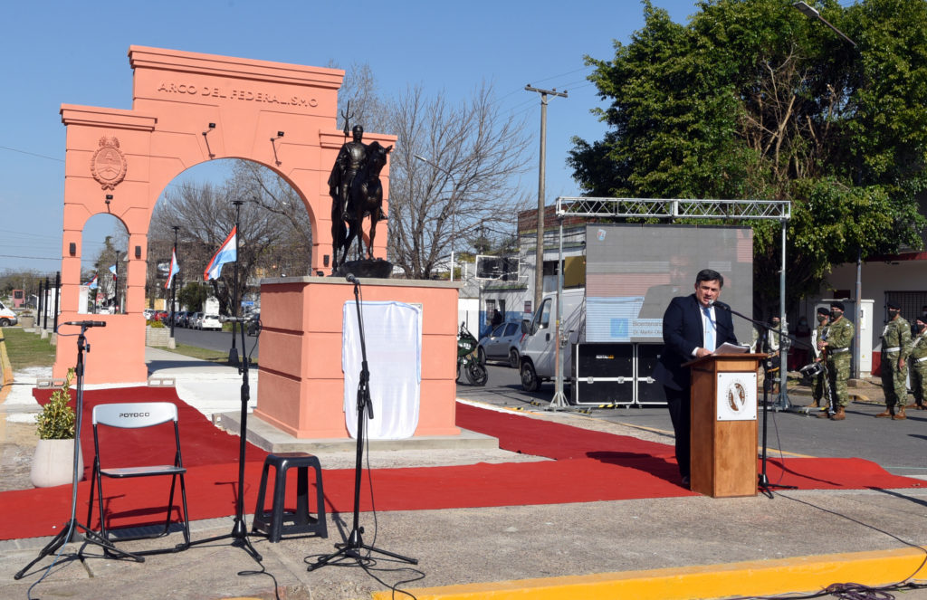 En este marco, el intendente Martín Oliva y el gobernador Gustavo Bordet inauguraron el Arco del Federalismo, que abre la Plazoleta del Federalismo, y, esencialmente, una bella escultura ecuestre del Supremo Entrerriano que en adelante lucirá iluminado en la esquina de boulevard Montoneras y 9 de Julio.