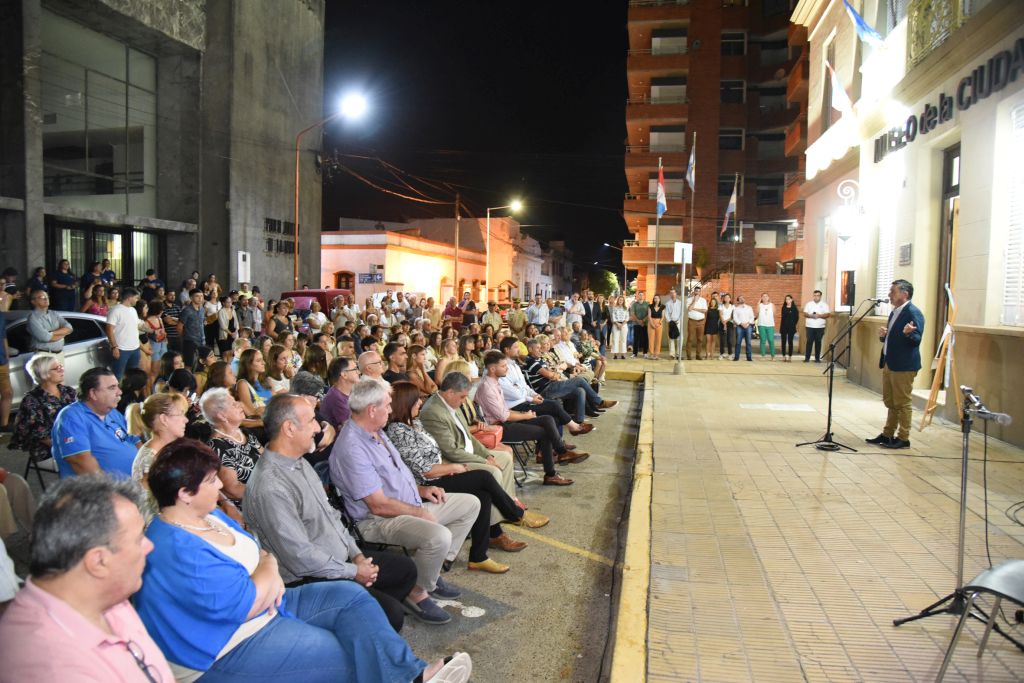 La ceremonia comenzó a las 20.30 con la presencia del intendente Martín Oliva, del ex presidente municipal José Eduardo Lauritto, el diputado Jorge Satto, el presidente del Concejo Deliberante Ricardo Vales, la secretaria de Turismo de la Provincia María Laura Saad, entre otras autoridades vinculadas a los organismos de estudios históricos, universidades, militares y de fuerzas de seguridad, entre otras.