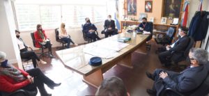 Con el propósito de avanzar en la próxima implementación del nuevo sistema de botón antipánico, el presidente municipal Martín Oliva recibió esta mañana en su despacho al titular del Juzgado de Familia Nº 2 Dante Coman y al secretario del Juzgado Nº 2, del mismo estamento judicial, Javier Cottet, al Coordinador de Fiscales Dr. Fernando Lombardi, el Jefe de la Departamental de Policía Comisario Mayor Luis Martín Gaillard, concejales y funcionarios municipales.