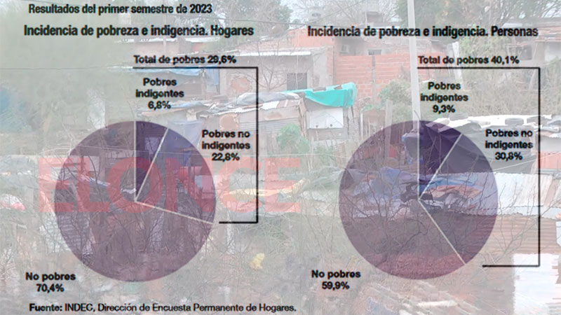Contra el primer semestre de 2022, la incidencia de la pobreza en el primer tramo de 2023 registró un aumento de 3,6 puntos porcentuales. En tanto, la indigencia mostró un aumento de medio punto porcentual en comparación con el dato del período enero-junio del año pasado.