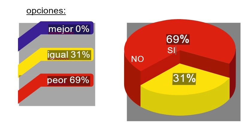 En este punto para evaluar la respuesta de IGUAL es válido traer a colación la encuesta realizada en septiembre y octubre de 2018 con el método de estudio de relevamiento telefónico de 19 casos. La consulta fue la misma: “La situación económica de su emprendimiento en comparación con el año anterior es:”. Las respuestas fueron las siguientes:
