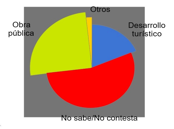 Desarrollo turístico y cultural, 18.2%, este ítem es muy valorado porque los encuestados identifican el desarrollo económico de ciudades vecinas relacionado al desarrollo turístico de las mismas.