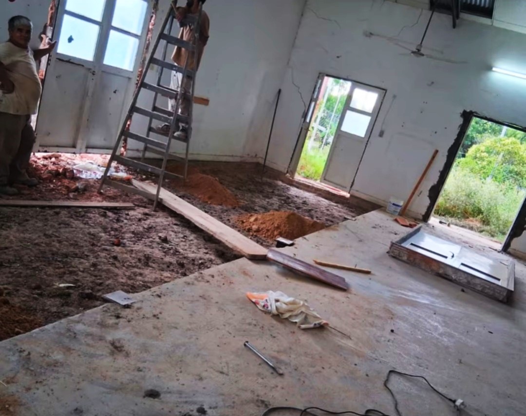 Se trata de la primera etapa de obra, que se concentra en el interior del edificio (aulas, talleres y baños), quedando para una instancia posterior una serie de refacciones y el mantenimiento exterior del edificio. Esta fase inicial incluye la reparación de pisos y ejecución de platea de hormigón, reparación de muros, cambio de ventanas y puertas, modificación de aberturas (salidas de emergencia), cielorraso de placa de yeso, pintura interior, instalación eléctrica completa y adaptación de baños existentes.
