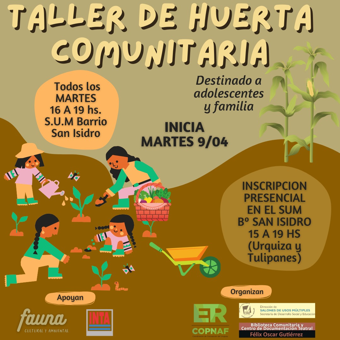 El taller de huerta comenzará el martes 9 de abril, continuando cada martes de 16 a 19 hs. en el SUM del Barrio San Isidro. Los y las interesadas deben inscribirse personalmente en el SUM, ubicado en calle Urquiza y Tulipanes, de lunes a viernes de 15 a 19 hs. Según informaron, el cupo es limitado.