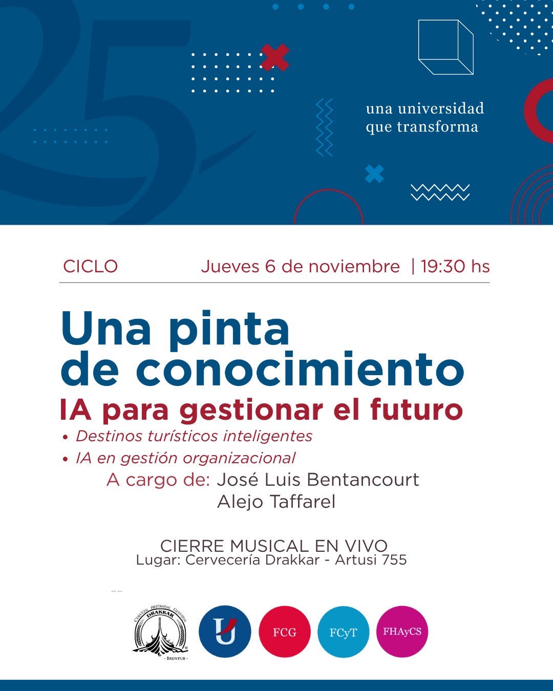 Este jueves 6 de noviembre a las 20:00 horas, el ciclo “Una Pinta de Conocimiento” propone un nuevo encuentro donde la inteligencia, la tecnología y la visión estratégica se conectan para pensar el futuro. La cita será en Drakkar Brewpub (Artusi 755, Concepción del Uruguay), con apertura de puertas desde las 19:30.