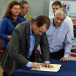 El presidente municipal José Eduardo Lauritto, acompañado del titular del HCD, Martín Oliva, saludó brevemente al resto de las autoridades y de las firmas oferentes, para dejar paso inmediatamente a la ceremonia oportunamente convocada.