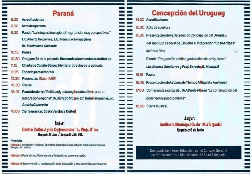 Este es el programa de realización de Jornada en Paraná ( 28 de junio)y Concepción del Uruguay( 29 de junio).