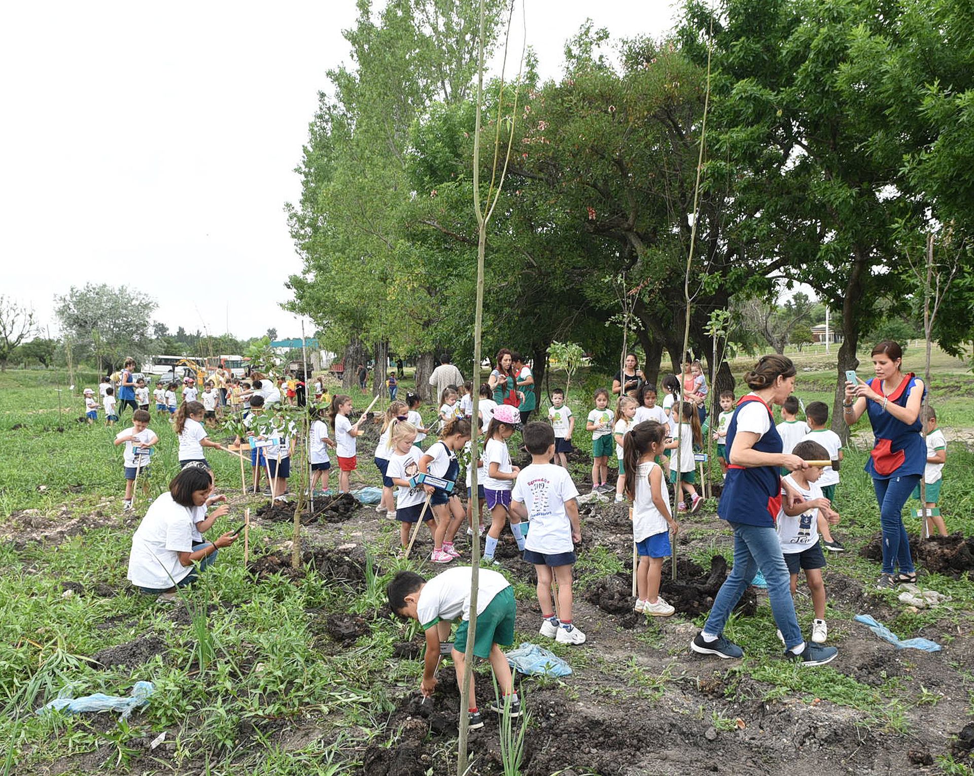 En el Parque de la Ciudad, chicos de los seis jardines maternales municipales plantaron 100 árboles este jueves, iniciativa de la Secretaría de Desarrollo Social y Educación. La titular de esta Secretaría, Marianela Marclay, manifestó que el objetivo de la actividad fue “concientizar sobre la necesidad de cuidar el medio ambiente y promover el contacto de los niños con la naturaleza”. Fue con este fin que se plantaron ejemplares de seis especies, teniendo cada árbol plantado la identificación con el nombre de un niño.