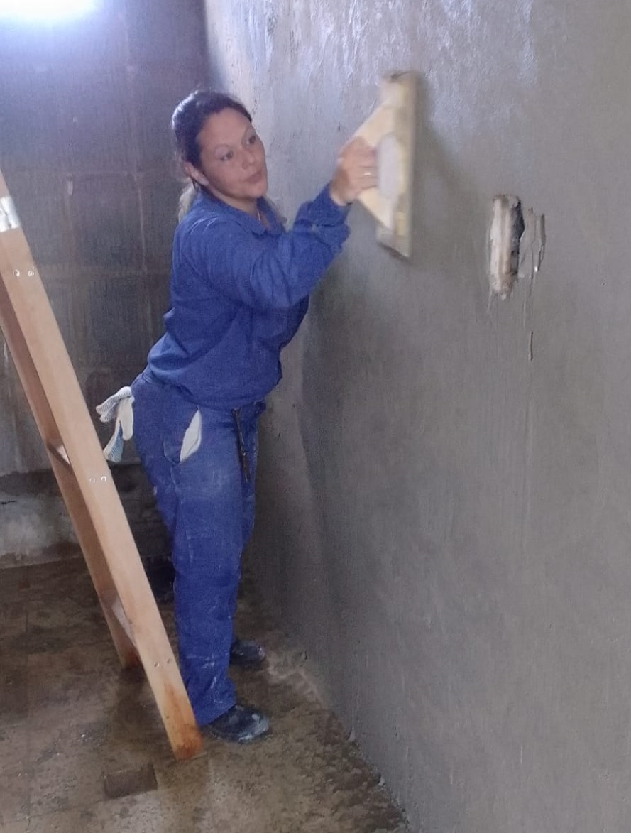 Con un año de formación, esta decidida albañil se aventuró en su primera obra bajo un patrón particular. Desde entonces, ha construido casas, garajes y realizado una variedad de trabajos que han fortalecido mi actividad, construyendo la experiencia misma.