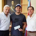 Pero luego de la entrega de la distinción que la recibió su entrenador, habló vía telefónica, en donde se mostró muy emocionado por el premio recibido y agradeció a todos los que colaboran con el para que pueda competir.