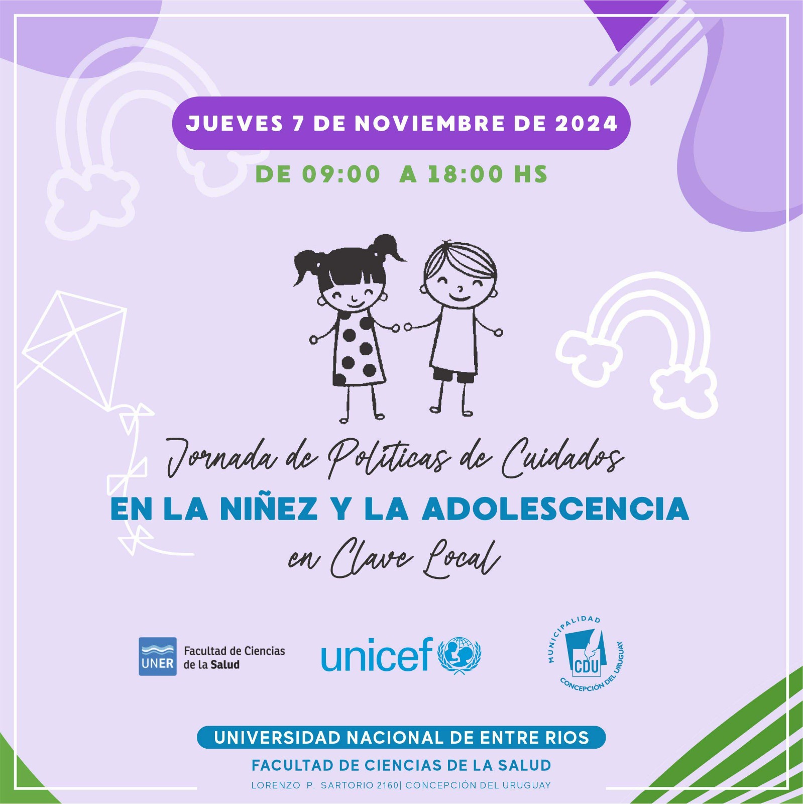 Con el objetivo de propiciar un espacio de debate para la construcción de políticas de protección de niños, niñas y adolescentes en clave local, la Facultad de Ciencias de la Salud UNER y la Municipalidad de Concepción del Uruguay con el apoyo de UNICEF realizarán la Jornada de Políticas de Cuidados en la Niñez y la Adolescencia en Clave Local.