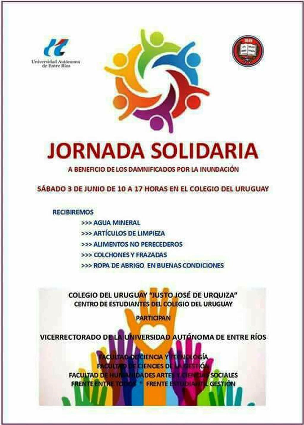 jornada solidaria jun 2017Este sábado 3 de Junio entre las 10 y las 17 horas, frente al Colegio del Uruguay.